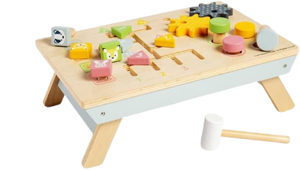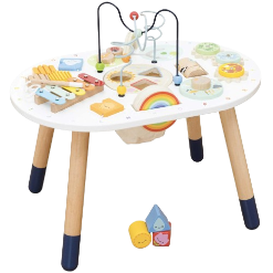 Mesinha Sensorial de atividades fabricada artesanalmente em madeira com brinquedos sensoriais pintados à mão oferece diversas opções de brincadeiras. A mesinha sensorial desenvolve a