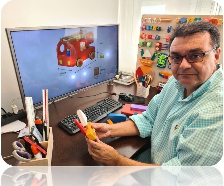 em madeira e pintamos à mão desde 2021, como se faziam os brinquedos antigamente.